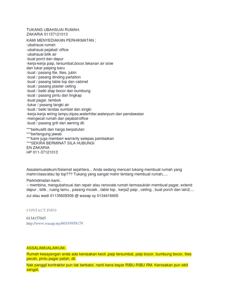 Plumbing Dan Renovation 0176239476 Taman Bunga Raya Iklan Percuma Malaysia